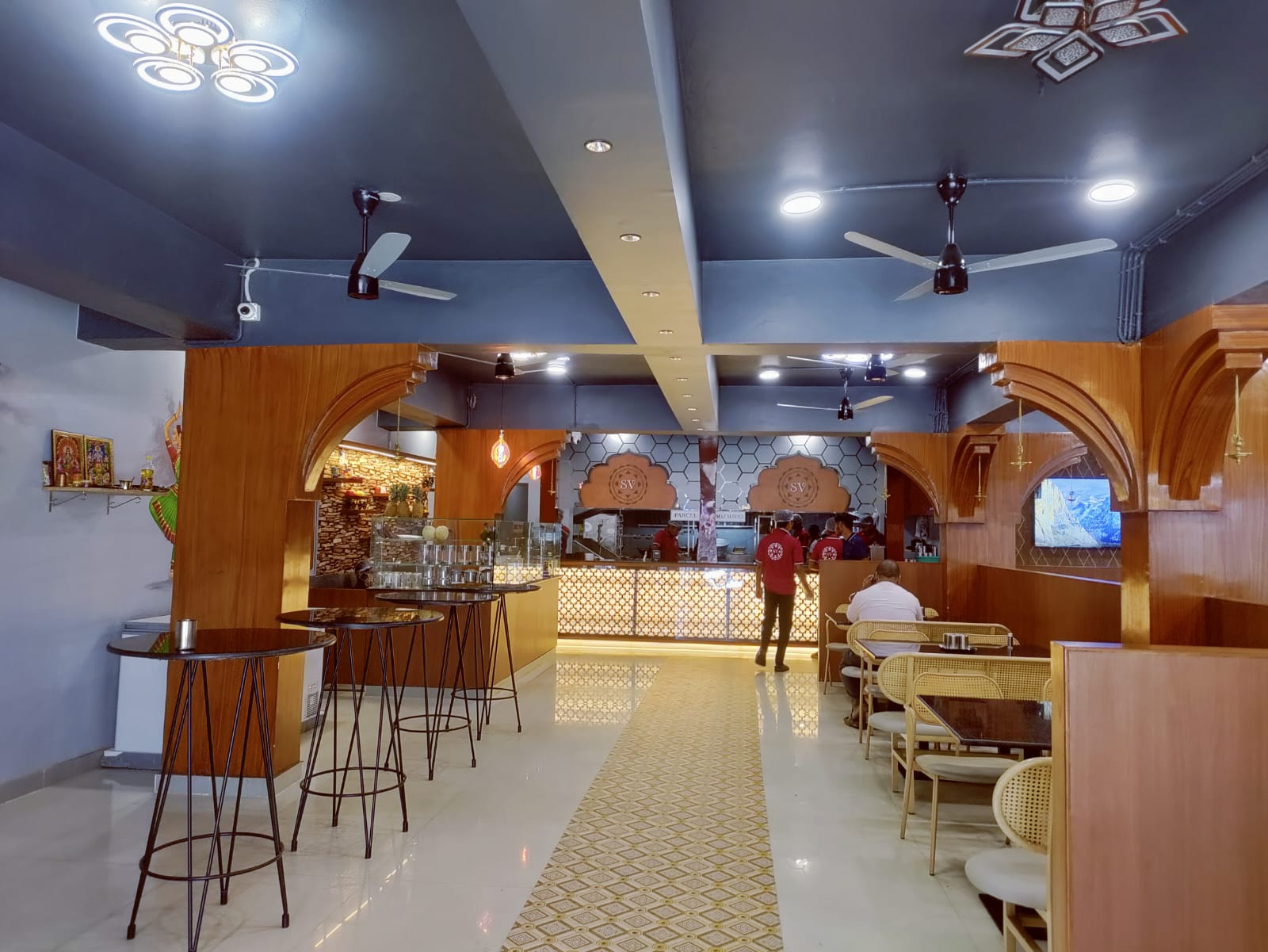 Experience the genuine warmth of South Indian hospitality. Centered around our majestic Rangoli symbol of culture and welcome, our dedicated team provides attentive service, ensuring your visit is not just a meal, but a truly memorable and spiritual encounter filled with care and tradition.
